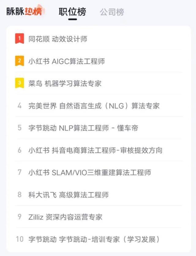 图注:脉脉职位热榜。