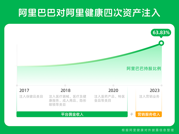 值得注意的是,本次交易是阿里巴巴集团对阿里健康上市公司持续资产注入的延续,此前,阿里巴巴集团曾于2017年、2018年、2020年,分别向阿里健康注入了天猫平台“蓝帽子”保健食品在线业务;天猫医疗器械及保健用品、成人用品、医疗和健康服务;天猫上(包括通过天猫超市)销售的药品、特殊医学用途配方食品、以及仅在天猫超市上销售的医疗器械、成人用品、保健用品、医疗及健康服务、目标蓝帽子保健食品,天猫国际销售药品、医疗器械、保健用品、特殊医学用途配方食品、医疗及健康服务。