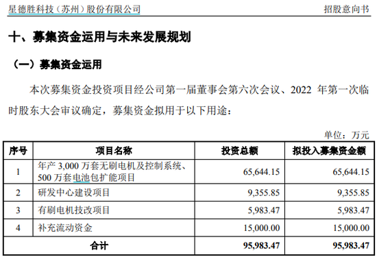 但即便这样,星德胜这次IPO上市,提出的募投项目还是扩产,“年产3000 万套无刷电机及控制系统、500万套电池包扩能项目”,总投资额高达6.5个亿。