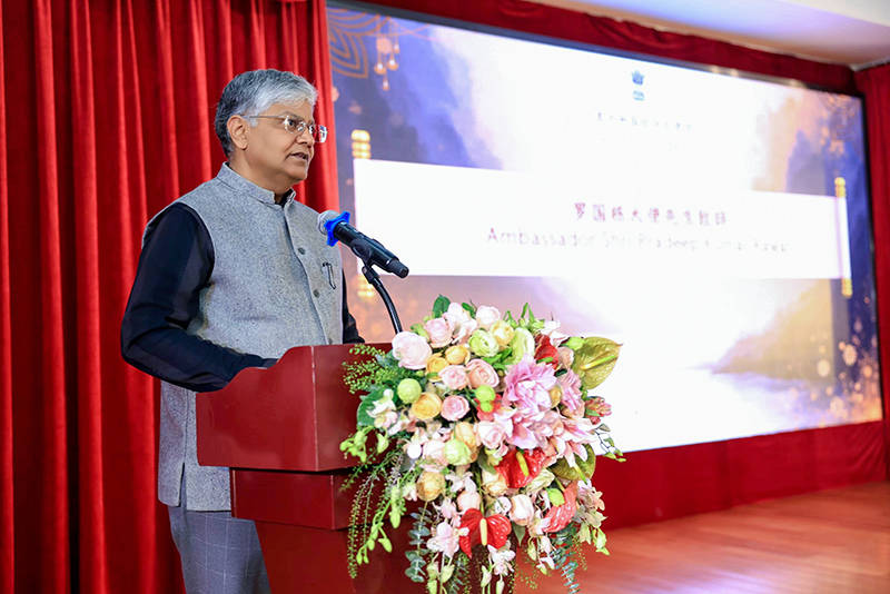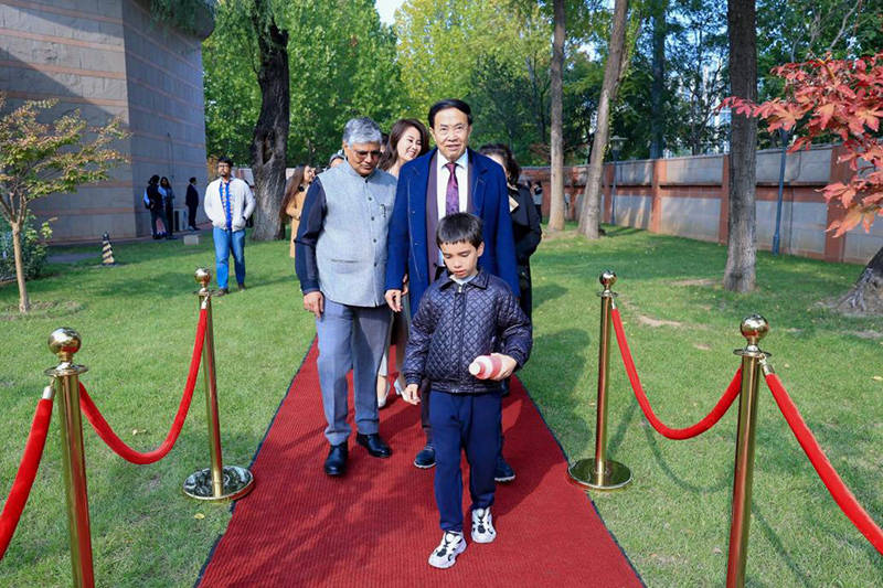 在全场嘉宾的见证下,袁熙坤与罗国栋大使共同为雕塑揭幕。这座青铜塑像不仅成为印度驻华使馆的新人文景观,更化作一座浓缩的“文明桥梁”,承载着两国人民对和平的向往与对友谊的珍视,为推动中印关系健康稳定发展注入文化力量 。