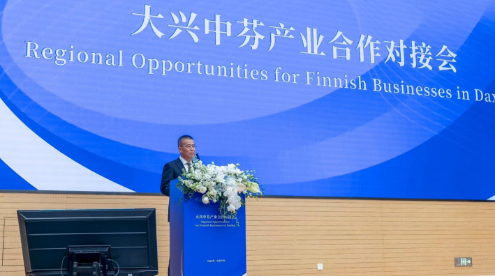 11月17日,由大兴机场临空区管委会主办的驻华使节进航城暨大兴中芬产业合作对接会在大兴机场临空区56度玫瑰园国际会议中心举行。活动得到了芬兰驻华使馆、芬兰国家商务促进局、北京芬兰商会以及科技部火炬中心、北京市投资促进服务中心的大力支持。在活动现场,来自芬兰的近20家企业与临空区部分企业代表以线上线下相结合的形式,进行了有针对性的对接交流。会上同时进行了“欧洲(大兴临空)创新中心” 揭牌仪式。