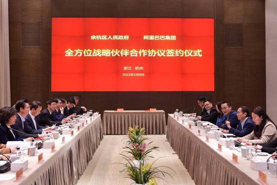 2月8日,在阿里巴巴落户杭州市余杭区十周年之际,余杭区人民政府与阿里巴巴签署全方位战略伙伴合作协议。在签约仪式上,阿里巴巴集团董事会主席兼首席执行官张勇表示,面向未来十年,阿里巴巴将始终扎根杭州、扎根中国,加大科研投入,将自身打造成有国际竞争力的中国公司,做出阿里生态的独特贡献。