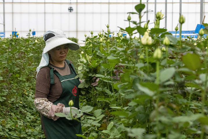镇里一些年轻人也成了“浪漫制造者”。36岁的孙娅就是其中之一,2021年她到花企工作后,觉得产业前景广阔,尝试种了3亩玫瑰,很受市场欢迎。