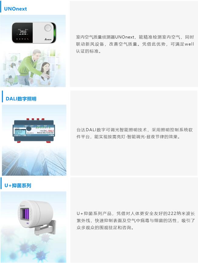 台达建筑思路不仅于此,关于健康需求,现场展示面面俱到: