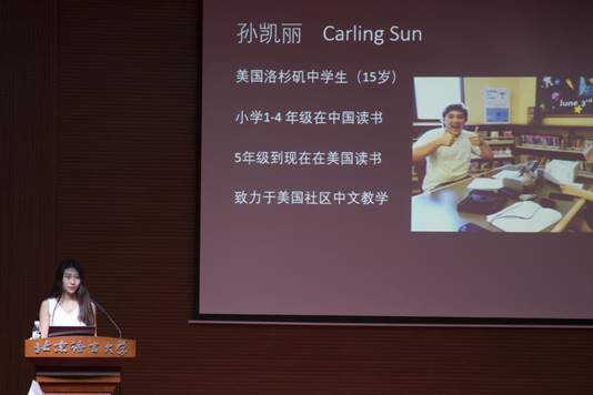 15岁的她带着在美国AI+VR中文教学的成功经验,应邀到北京语言大学给中国的大学老师们介绍她的VR教学方法,广受好评。
