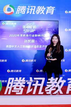 16岁的她的AI+VR中文教学方法,已经被中国的苏州大学和美国的北爱荷华大学用在大学课堂使用。获得了2020年度腾讯教育行业影响力人物奖和CCTV2020年度教育匠心人物奖。