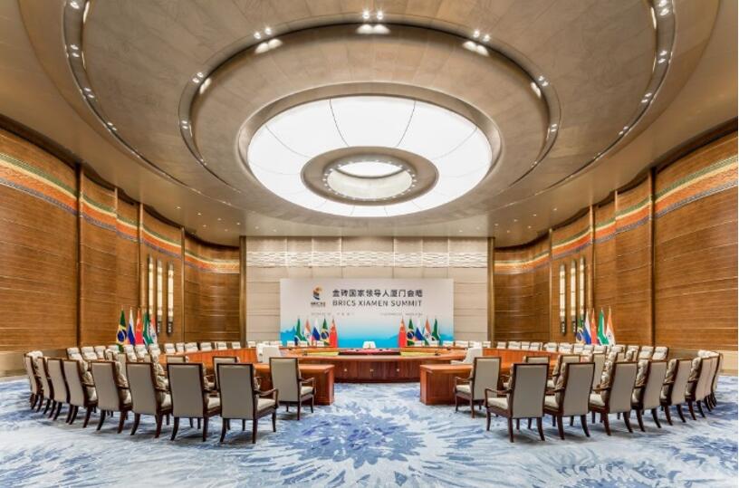 厦门金砖五国峰会会议中心项目的室内匠心设计以及艺术品的恰和呈现,体现出“国际语言、中国韵味、闽南情怀”,彰显了“一带一路”下中国开放包容的胸襟。