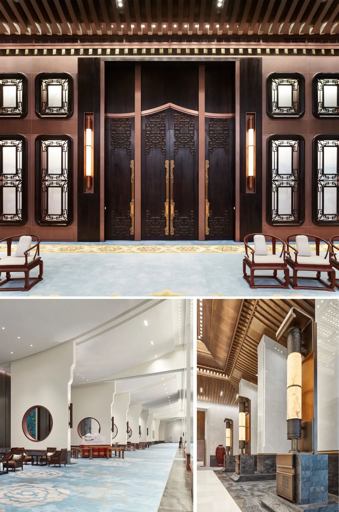 西安国际会议中心于2020年竣工,作为我国 “一带一路”建设的重要支点,这座国家级“会议会展中心”同样由北京建院装饰担纲室内空间方案设计。设计团队以汉唐文化为起点,力求将古建筑的文化特色与现代设计手法相融合,把新兴的室内空间艺术与厚重的历史建筑艺术相融在同一个时空,却又好似可以穿透历史洞见未来,从而达到内涵与形式的统一,最终打造出了一套以“大国风范,气韵光华”为主旨思路的经典案例,使“国之大美”的自信气节融入到现代文明的韵味之中。