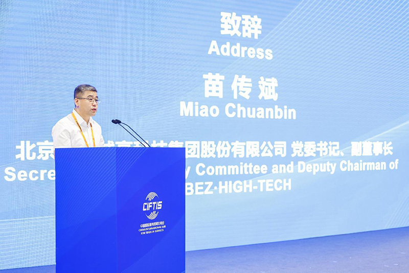 北京电子城高科技集团股份有限公司党委书记、副董事长苗传斌在致辞中表示,电子城高科将充分彰显国有企业担当,在京津冀产业链国际合作中发挥产业资源优势,与国际知名企业和专家学者充分交流,共同探索产业链国际合作发展新路径、新模式。