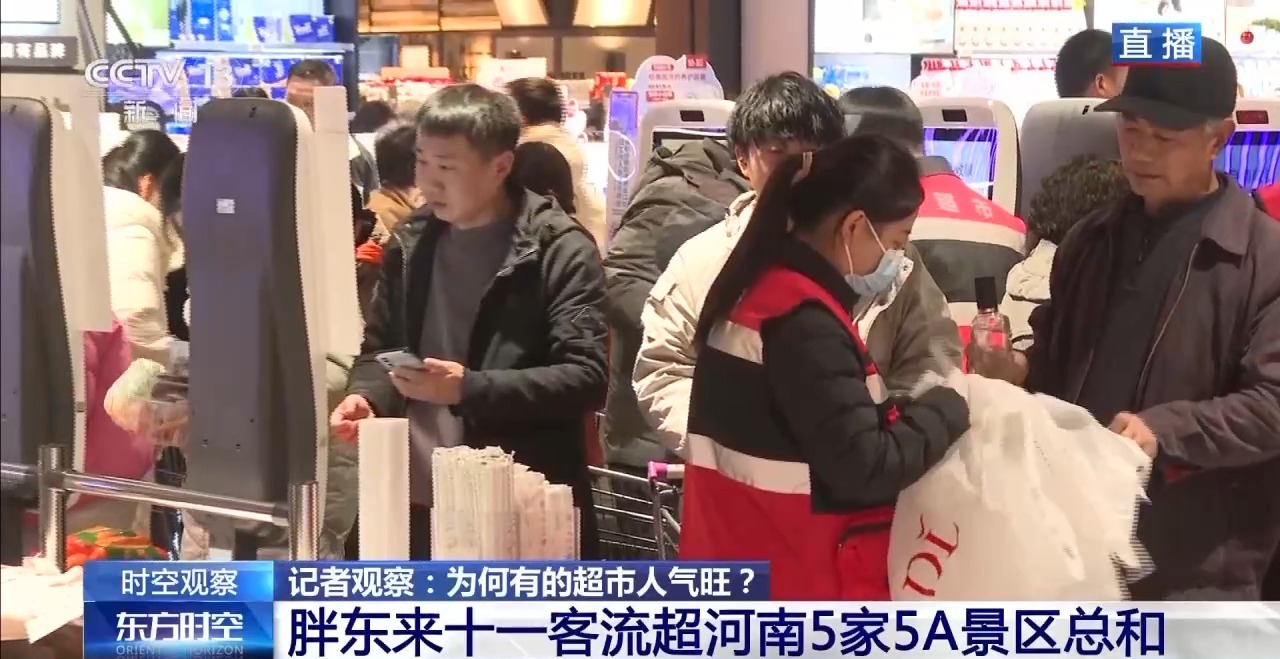 总台记者 王涛:我现在是在河南许昌胖东来超市的金汇广场店,可以看到,虽然晚上8点多了,这家超市目前人气依然非常旺,收银台前拍起了长队。胖东来在许昌共有11家超市,大家在网上了解比较多的是胖东来天使城店。由于客流量实在太大,每天客流量都有5万多人次,为了让员工能得到充分的休息,天使城店营业时间由晚上9点半改到8点结束。我所在的金汇广场店目前还是正常营业到9点半。