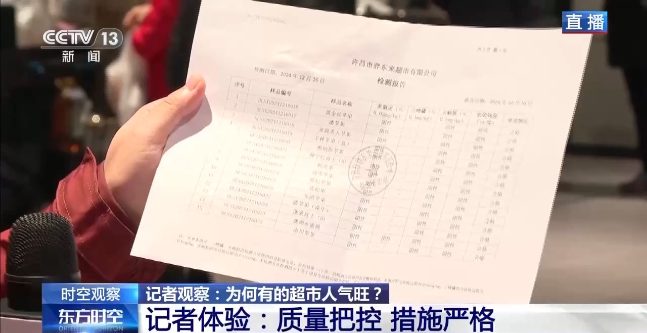 另外,胖东来每天都会对蔬菜的农药残留进行检测。他们建立了一个检测队伍和检测室,将检测报告贴到超市墙上,顾客看见后就更放心一些。