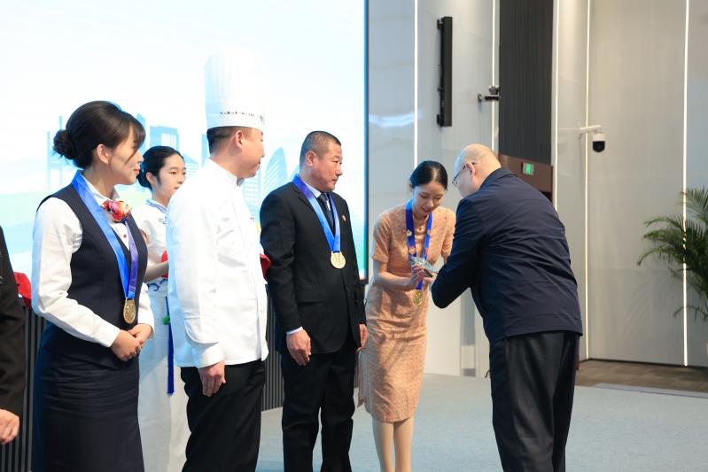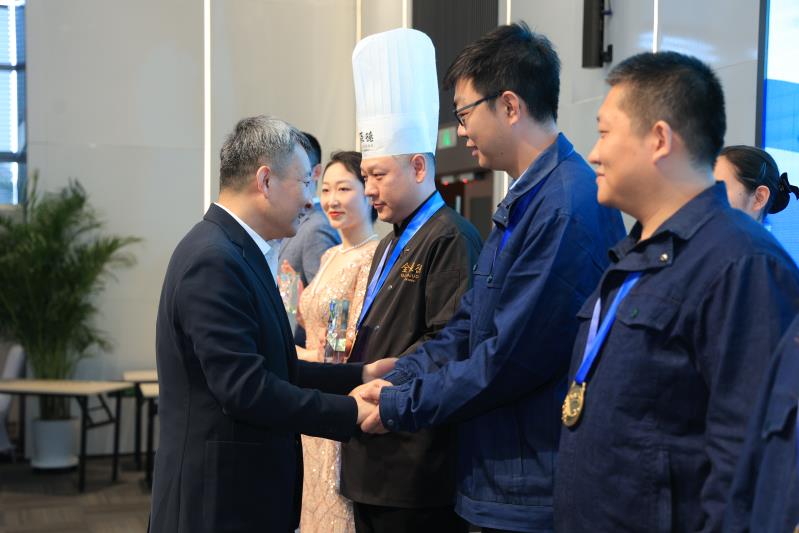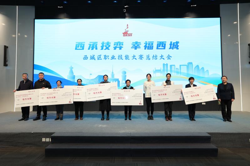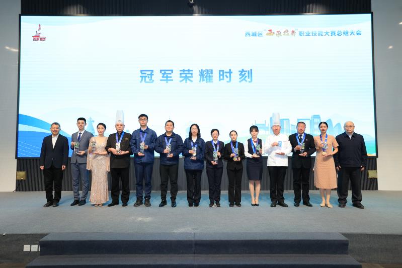 在北京市第六届职业技能大赛135个项目中,西城区组织辖区企事业单位踊跃参与,44名选手夺得了26个项目的前三名,其中斩获了理财规划师、网络安全管理员、烹饪(中餐)、有限空间作业等14个项目的冠军,涵盖了金融科技、生活服务、文创非遗、城市保障等领域,与西城区“4+N”产业紧密契合,为区域高质量发展集聚了人才动能。市人力社保局党组成员、副局长吴晓军,西城区政府党组成员、副区长陈大鹏为冠军选手们获颁奖杯。