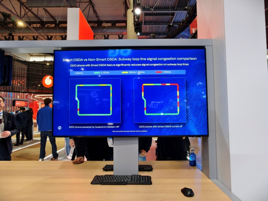 小米手机演示还专门展示了中国商务人士来往最为繁忙的京沪高铁线上围绕SNS 4.0进行的测试,通过在高铁行进过程中接入线上会议,来监测网络状态,开启SNS 4.0后的小米手机卡顿总时长下降56%;iQOO在快速行进于各个繁忙站台的深圳地铁车厢中展开测试,开启SNS 4.0后iQOO手机,相比其他基带解决方案的机型,平均游戏时延下降34%,300ms以上的高时延占比下降81%。背后的原理在于,iQOO通过SNS 4.0不断预先选择最佳的无线网络小区,保障以最低时延满足游戏需求。
