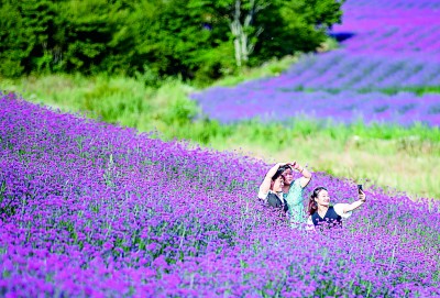 游客在重庆市巫溪县红池坝风景区云中花海拍照。新华社发